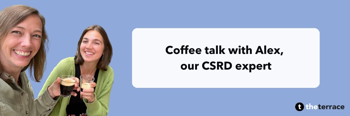 Now, let’s be real—making the CSRD process fun might be a bit of a stretch. Collecting and verifying data is not going to be everyone’s favourite task. But we can definitely take the hassle out of it. We’ll handle the complex and boring stuff and explain it in a way that makes sense to you, so companies can focus on making a positive impact. In the end, a lot of companies and their employees care about reporting on the good they’re doing and building a more sustainable future. At The Terrace, we’re here to support them every step of the way and help them reach those goals.
